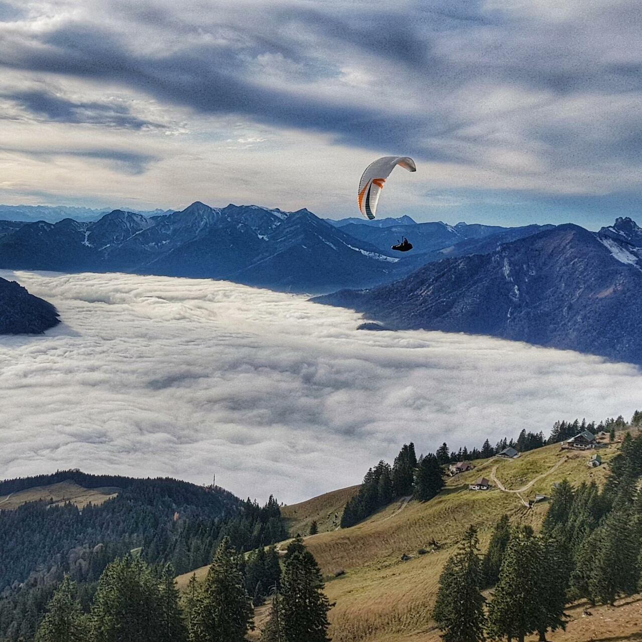 Der Flug vom Hochgern bietet einen einmaligen Blick ins angrenzende Flachland und auf den Chiemsee, vor allem wenn man durch die Thermik noch ein paar Höhenmeter aufsteigen kann.